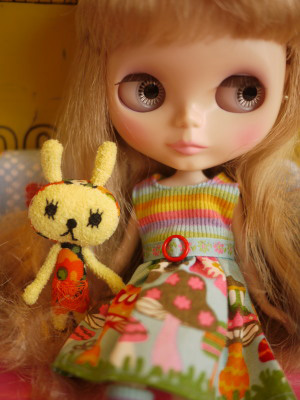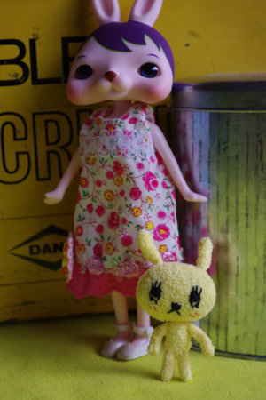 詳細:菜の花畑で暮らしたい、黄色いお顔のウサポンたん。黄色い部分はパイル地で、花柄の側頭部から後頭部、胴体はヴィン生地です。レースリボンのスカートの裾からは、おパンツ丸見えですが、アンポンには良くあることです。菜の花のことを「なばな」とか「アブラナ」と呼ぶと少しだけ拗ねます。