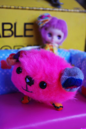 詳細:ショッキングピンクのモフモフワンポン。後頭部とお尻は薄ピンクです。ヴィン生地の前脚は、大型犬の子犬を思わせる太さで、アンポンのわりにけっこうしっかり立てます。でも、立っているより、仰向けにひっくり返っている方が好きです。背中がむず痒いのではなく、お腹を撫でてほしいのです。