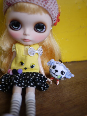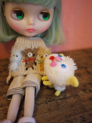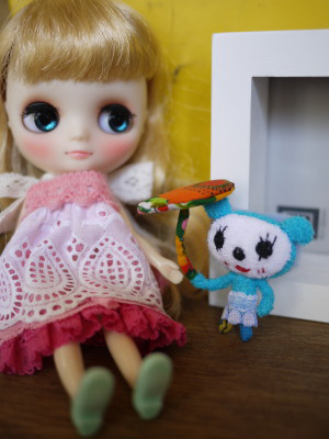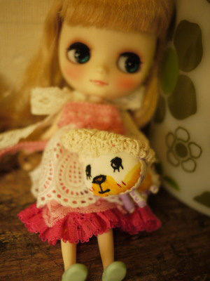 詳細:littleさんとのコラボ「COFPPEby anpon」の着せ替えアンポンです。裾にレースとビーズをあしらったワンピースと、サロペットの2着を嫁入り衣装として持参します。チクレッタ本人は体部分がヴィン生地で、「脱いでもすごいんです」だそうです。顔立ちと赤ちゃん帽せいか、サロペット姿はまるっきり「幼子」。衣装はフォーチュンワンダとシェアできます。