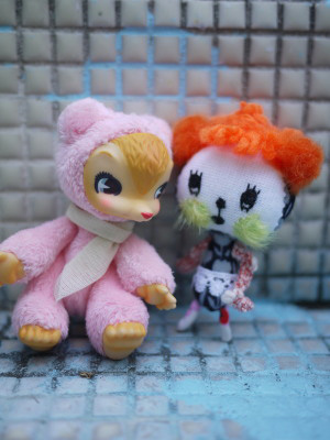 詳細:うっかりアフロの姉・イッルと、何やらやらかして「テへペロ」な妹・アッキの仲良し姉妹です。イッルは側頭部と後頭部、脚がヴィン生地.アッキは側頭部と体全体がヴィン生地です。様々なところがこっそりお揃いになった隠れぺアルックを楽しんでいます。なるべく半径10cm以内にいさせてやってください。