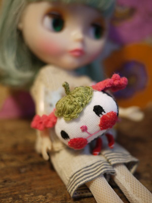 詳細:北方生まれの色白・赤ホッペの女の子。まとまりの悪い白い毛糸の髪と顔立ちが、相対性理論の博士に似ている気がします。かといって、バルーンミニスカートをはいたおじいちゃんではありません。湿気多い時期には、髪がとんでもないことになりそうです。風通しの良い居場所を用意してあげてください。